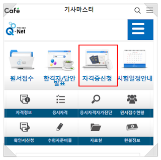 큐넷 자격증 사본, 모바일 발급 방법 상 말씀드린 상장형과 수첩형 없이 지금부터는 큐넷 자격증 사본, 모바일로도 발급이 가능합니다.